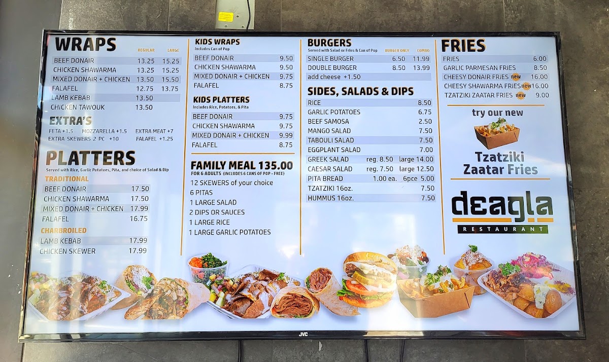 Deagla Restaurant Legacy, nestled in Calgary, offers a vibrant blend of Mediterranean flavors that captures the essence of culinary passion. The menu features delightful options such as the Chicken Skewer Platter, where perfectly grilled skewers are paired with aromatic rice and refreshing salads, creating a savory experience that satisfies every palate.